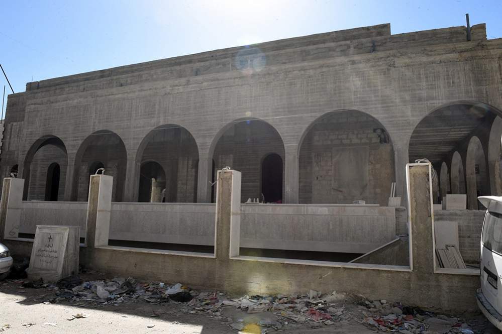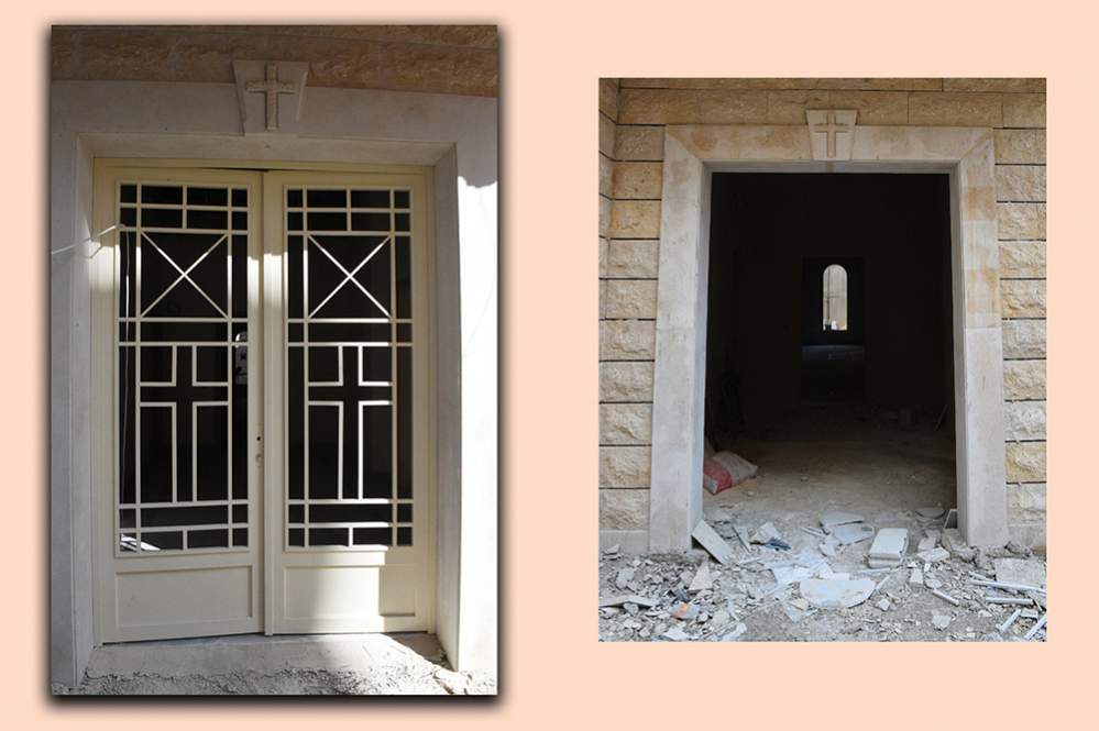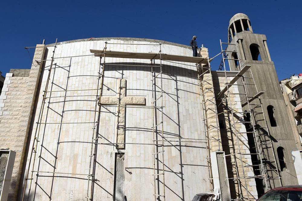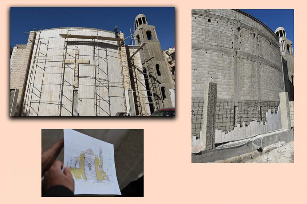 صور مقارنة من أعمال البناء في كنيسة جرمانا