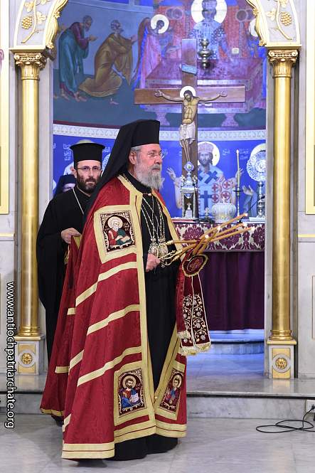 رئيس أساقفة قبرص يقيم القداس في كنيسة الصليب المقدس بدمشق