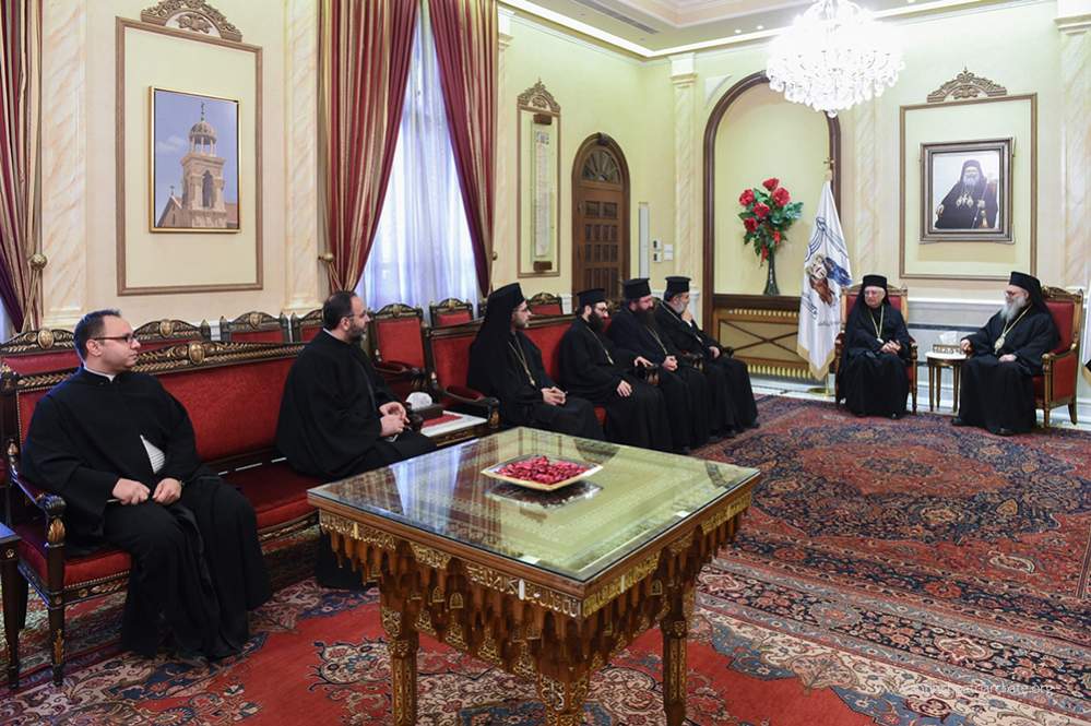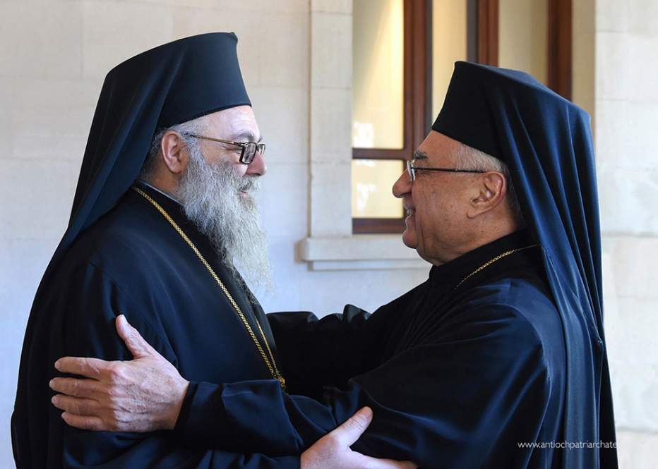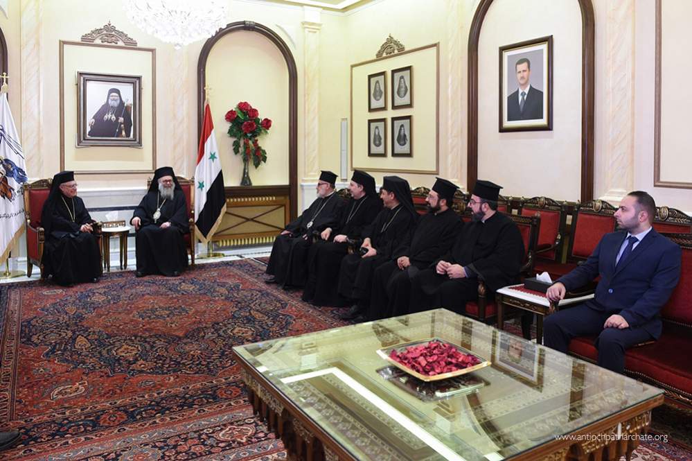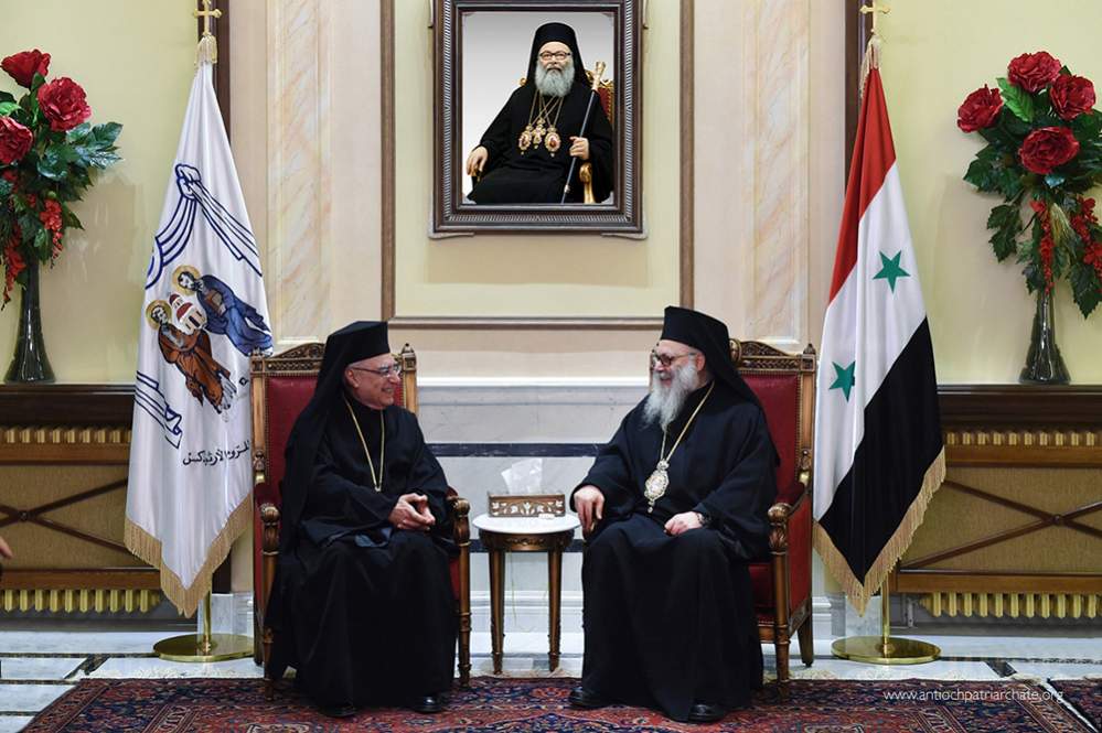 صاحب الغبطة البطريرك يوحنا العاشر يستقبل في الدار البطريركية في دمشق غبطة البطريرك يوسف الأول بطريرك الروم الكاثوليك للمعايدة بعيد الميلاد المجيد