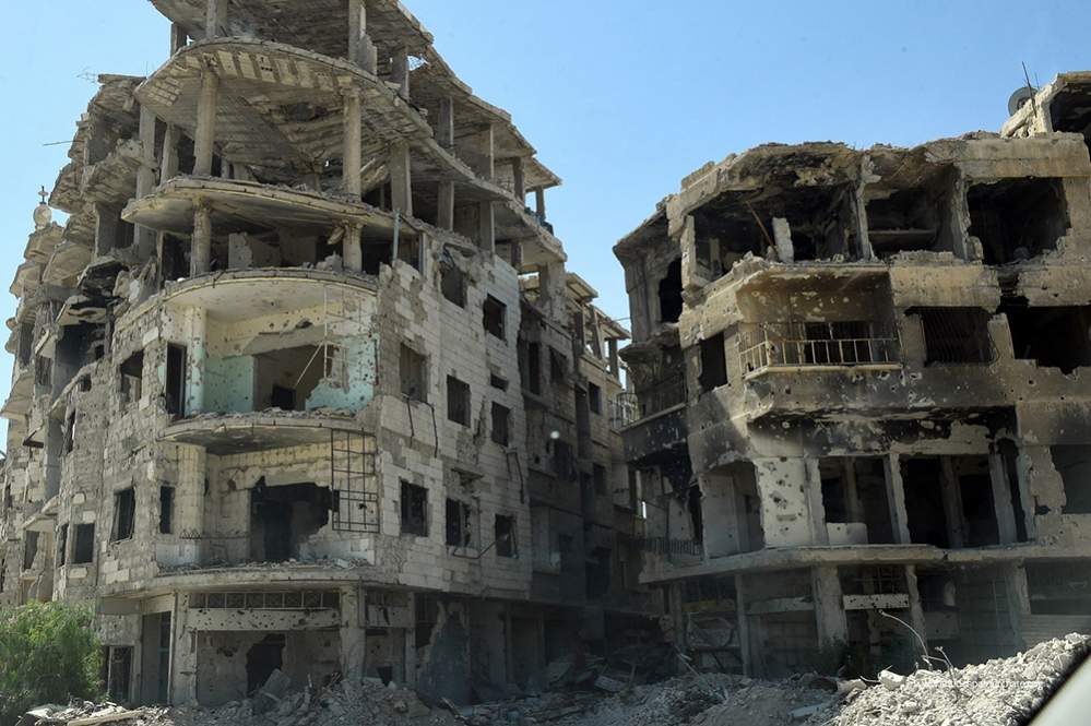 البطريرك يوحنا العاشر في زيارة تفقديّة إلى عربين وحرستا في الغوطة الشرقيّة. ٦ تمّوز ٢٠١٨