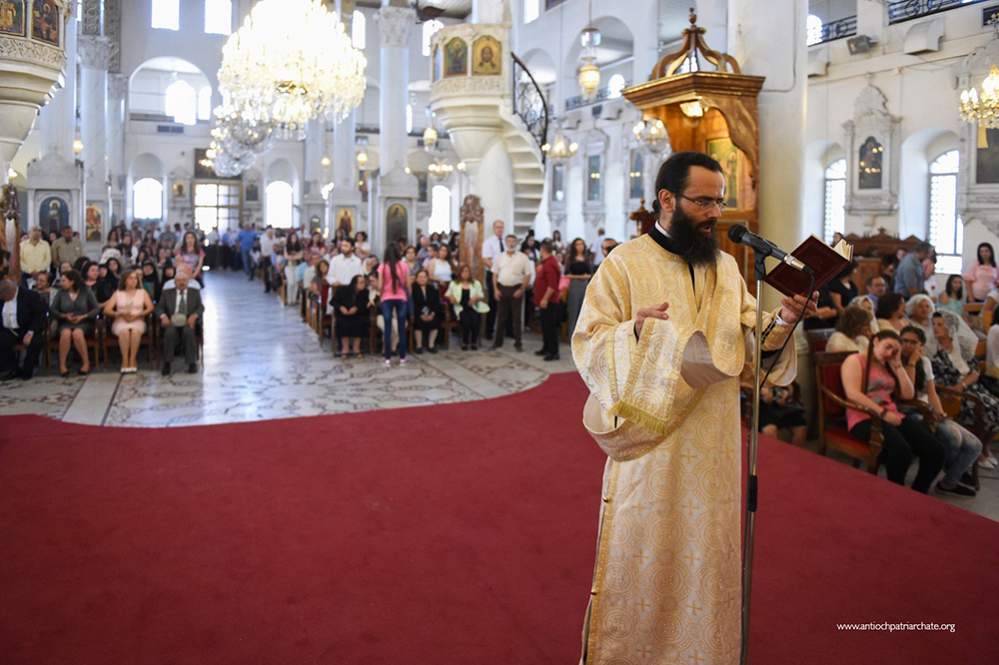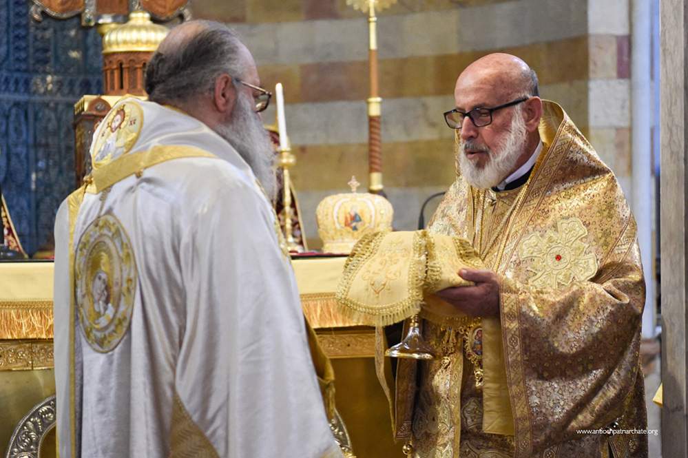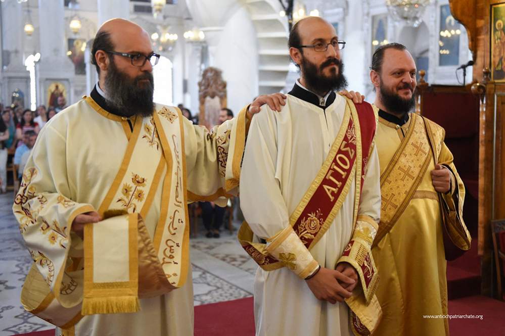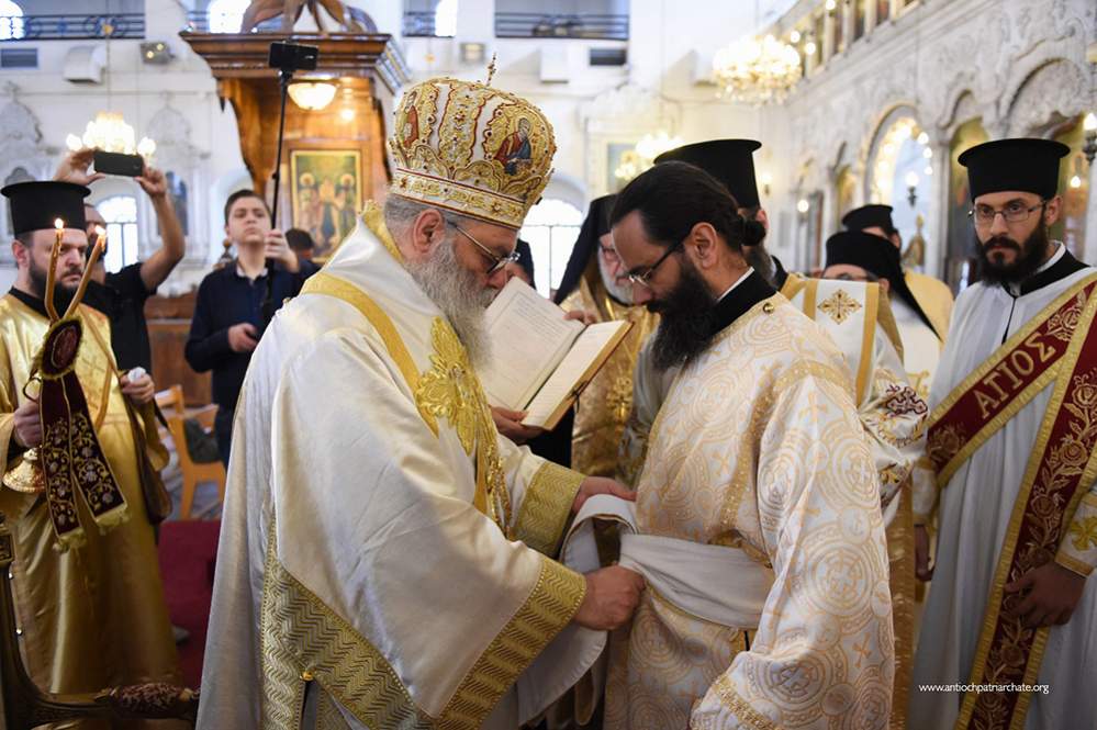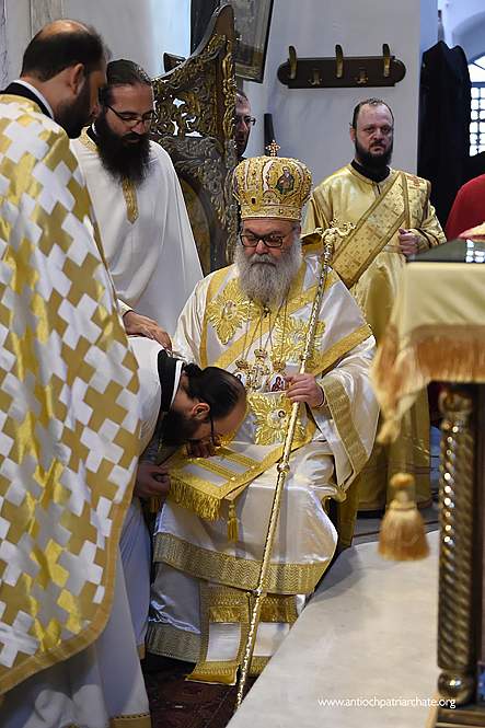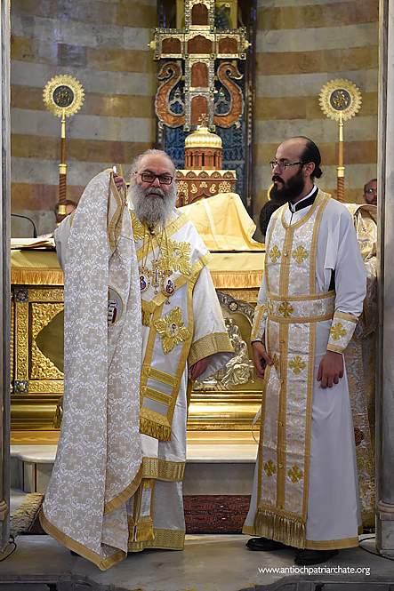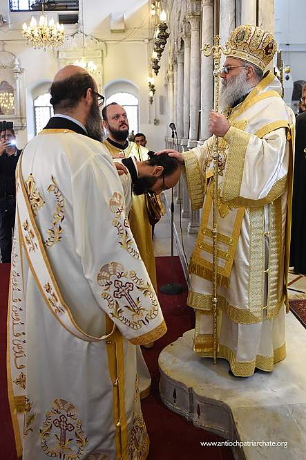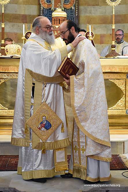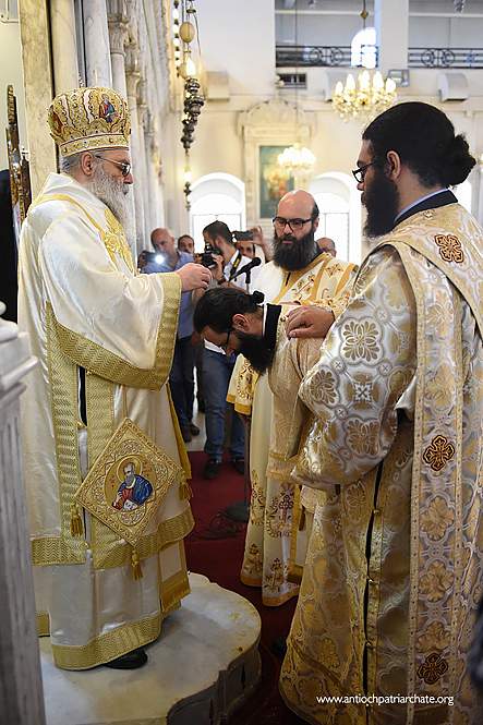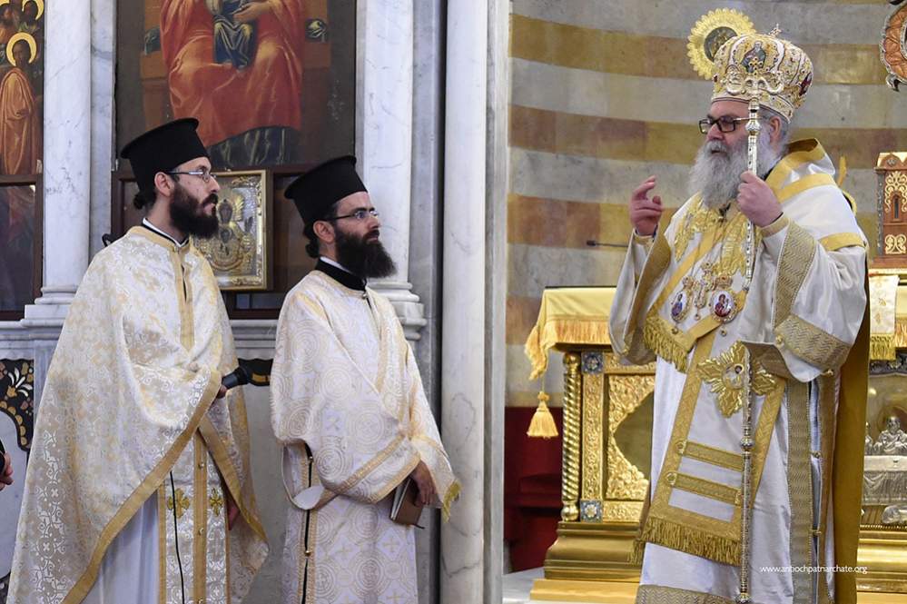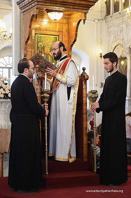 بوضع يد غبطة البطريرك يوحنا العاشر الشمّاس رومانوس بغدان كاهناً والأخ سمعان أيوب شمّاساً الكاتدرائيّة المريميّة، دمشق، ١٥ تمّوز ٢٠١٨