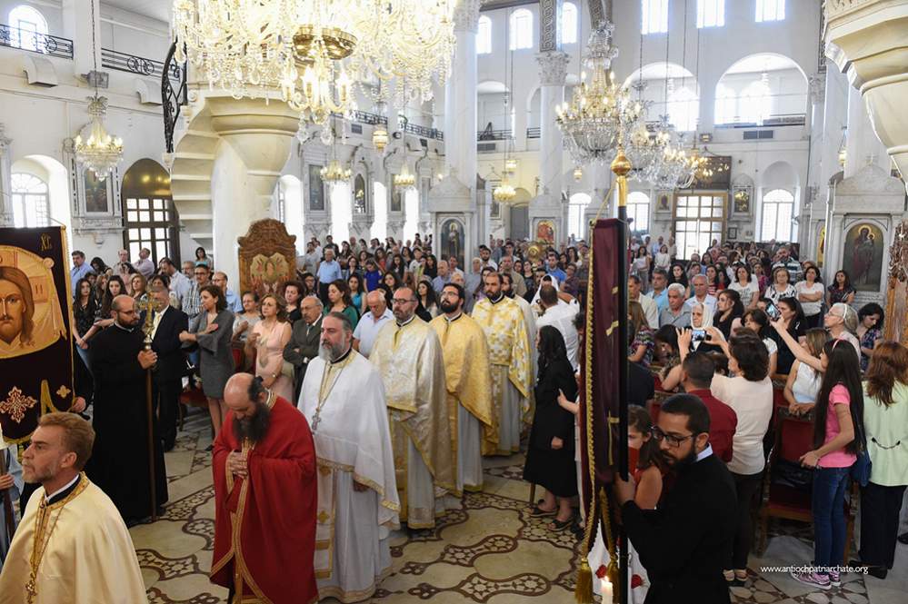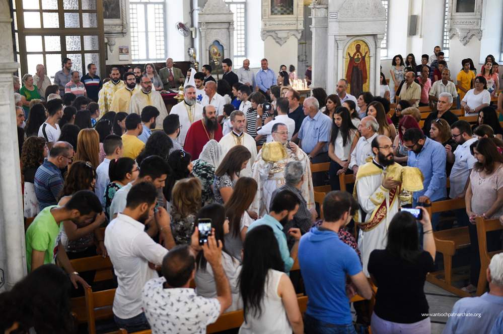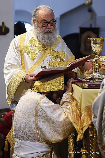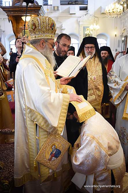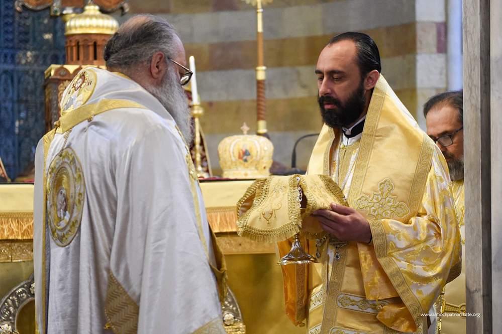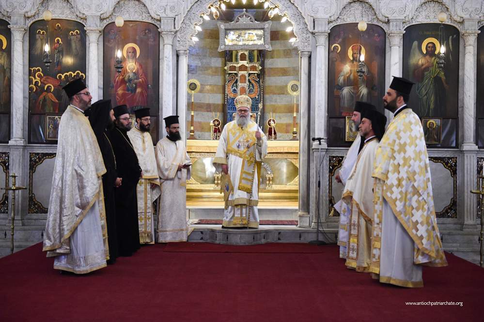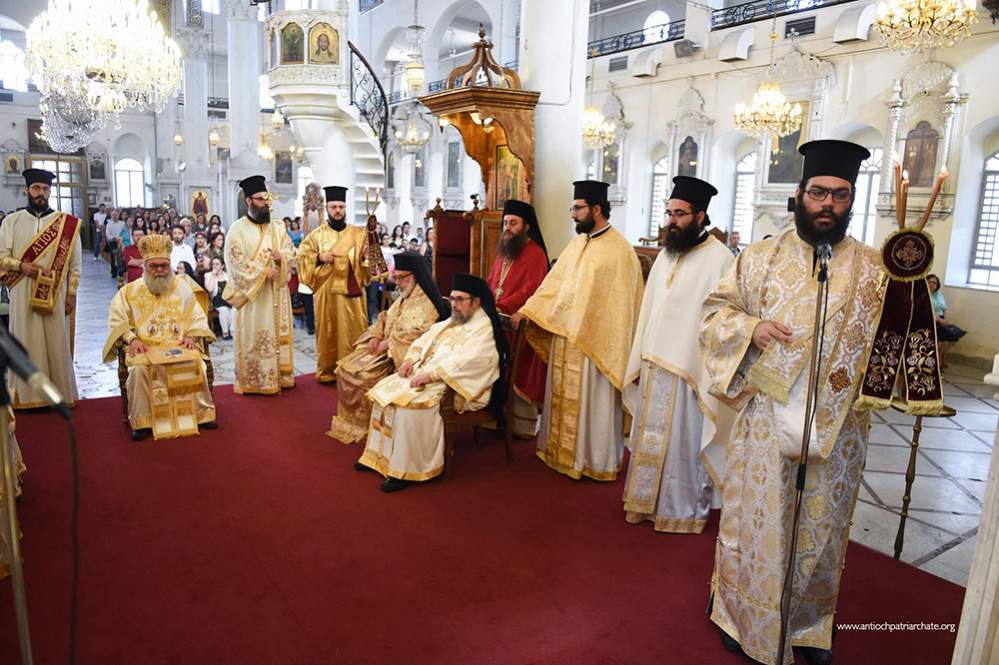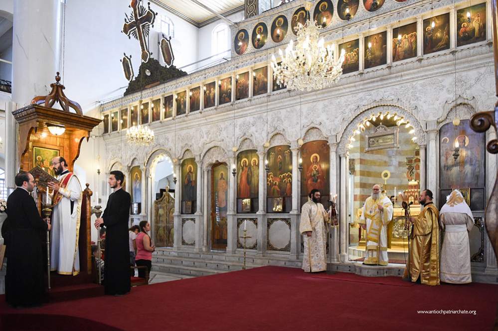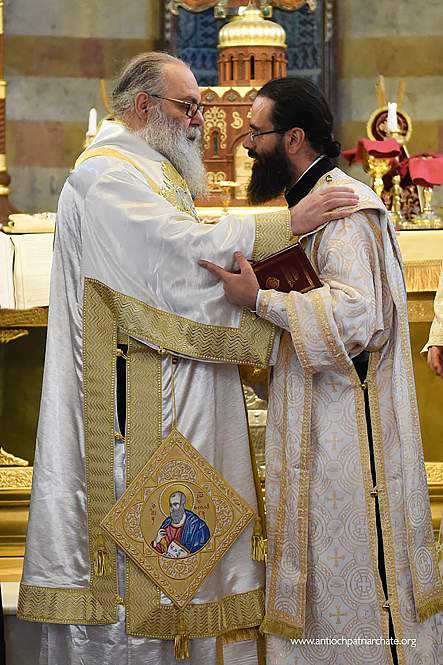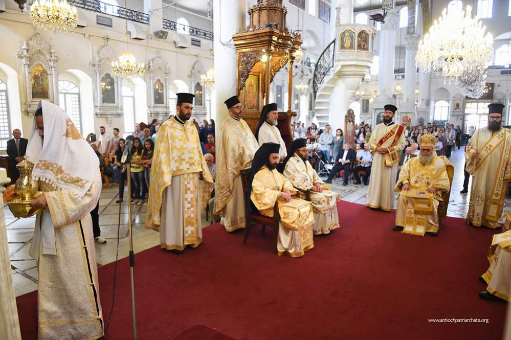 بوضع يد غبطة البطريرك يوحنا العاشر الشمّاس رومانوس بغدان كاهناً والأخ سمعان أيوب شمّاساً الكاتدرائيّة المريميّة، دمشق، ١٥ تمّوز ٢٠١٨
