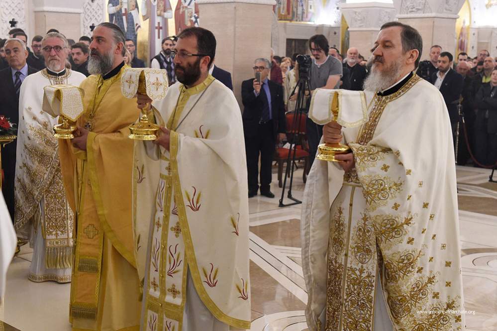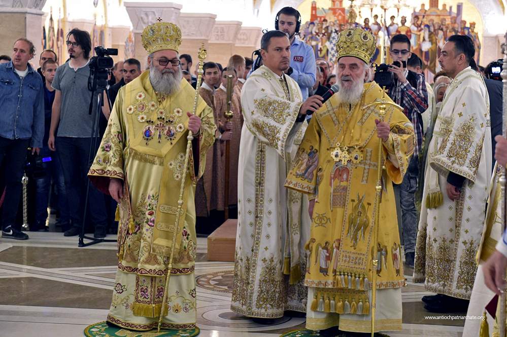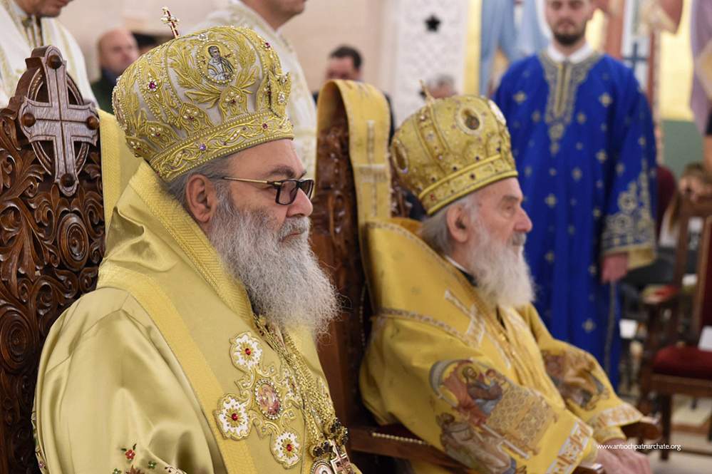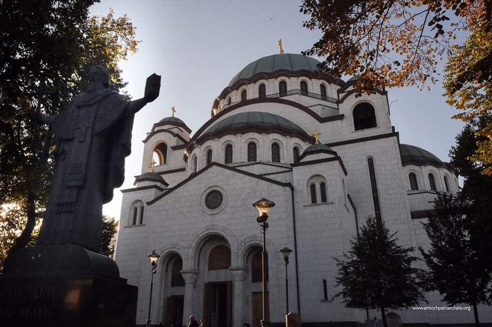 البطريركان يوحنا وإيريناوس يقيمان القدّاس الإلهيّ في كنيسة القدّيس سابا المستنير في بلغراد.