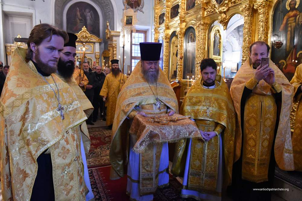 المتروبوليت نيفن صيقلي يقيم القداس الإلهي في الأمطوش الأنطاكي- موسكو بحضور غبطة البطريرك يوحنا العاشر