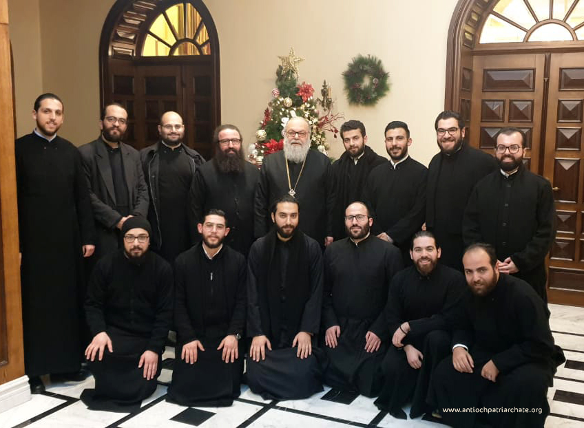 البطريرك يوحنا العاشر يلتقي طلاب معهد القديس يوحنا الدمشقي اللاهوتي في الدار البطريركية في دمشق.