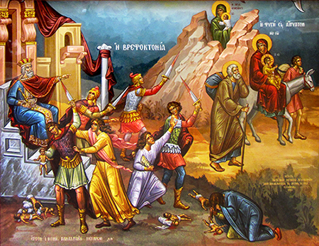 انتظر هيرودوس بفارغ الصبر عودة المجوس فلم يعودوا ولا أرسلوا له خبراً بشأن الصبي. ولما طال انتظاره، على غير طائل، تيقّن أنهم سخروا به وخدعوه، فاستبدّ به غضب شديد وقام فأرسل إلى بيت لحم والتخوم وقتل جميع الصبيان فيها من عمر سنتين فما دون على حسب الزمان الذي تحقّقه من المجوس.