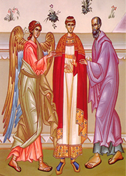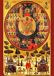 السماء والأرض تؤلّفان جوقًا واحدًا، الملائكة والبشر تتآلفان في تسبيح "مبدع كلّ شيء"، الملائكة تنشد تسبيحًا مثلّث التقديس (تريصاجيون) قدّوس قدّوس قدّوس... والبشر تجيب بأودية تسبيح ثالوثية (تريوديون) شريفة خشوعية.