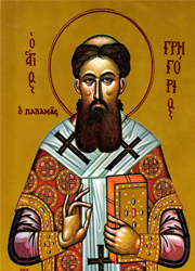 القدّيس غريغوريوس بالاماس، كان راهبًا وناسكًا في الجبل المقدّس آثوس في بلاد اليونان، ثمَّ أصبح رئيساً لأساقفة مدينة تسالونيكي. هذا الأب عُرِفَ بِعِشقِهِ لله، وترك كتابات كثيرة. من أهمِّ الموضوعات التي تحدّثَ عنها القدّيس غريغوريوس بالاماس موضوع النعمة، نعمة الله، مجدِهِ ونُورِه. أراد أن يُخبرَنا أن الذين يتبعون الربَّ ويُحِبُّونَه ويسعون ليكونوا معه، يكافؤون بنور مجده الإلهيّ. كما يُذكِّرُنا بما حدث مع التلاميذ يوم التجلّي، عندما ظهر الربُّ أمامَهُم وكشفَ لهم مجدَهُ، وتحوّلَتْ ثيابُه إلى بيضاء ناصعة، أكثر بياضاً من الثلج، ونورُه أقوى من الشمس. هذا هو مجد الله ونوره الذي غمرنا به، نحن أحبّاءَه والذين نُرضِيه في حياتِنا على هذه الأرض. (لمزيد من الشرح أنقر هنا)