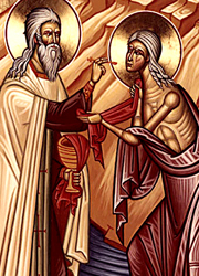 قبل دخولنا الأسبوع العظيم تضع الكنيسة أمام قلوبنا صورة هذه التائبة التي كتب سيرتها القدّيس صفرونيوس الأورشليميّ، عسانا نعود الى يسوع قبل الفصح لنلتقط الضياء المشع من وجهه على الصليب. فالكنيسة تقول لنا إذا عرفنا سيرة هذه القديسة فنحن قادرون ان نغسل خطايانا بالدموع وإلاّ تبقى أعمالنا وأصوامنا ظاهريّة. عاشت مريم في الاسكندرية في القرن الرابع وأخذت تتعاطى الفسق منذ أوّل بلوغها. ولكن أثناء عبورها عتبة الكنيسة في أورشليم منعها الله فوقفت منذهلةً وأجهشت بالبكاء. لم تكن تعلم في ذلك الوقت أنّ هذه الدموع كانت معمودية جديدة وقيامة جديدة وحياة جديدة. فخلعت عنها ثياب الخطيئة قاصدةً الصحراء لتتنسّك ما يناهز سبعًا وأربعين سنة. وبعد هذه الفترة النسكية الطويلة أضحت كائنًا ملائكيًّا. في نهاية حياتها، تناول القدسات على يد زوسّيماس الكاهن ورقدت بسلام، لتصبح كتابًا حيًّا تتعلّم منه الأجيال الإيمان والصبر والجهاد والتوبة. (لمزيد من الشرح أنقر هنا)