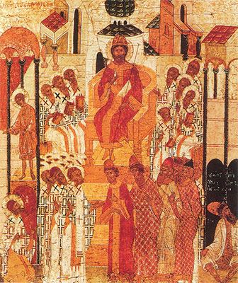 لمّا اجتمع الآباء الستمائة والثلاثون في المجمع المسكوني الرابع (خلقيدونيا ٤٥١م)، بهمّة الإمبراطورين التقيين مرقيانوس وبلخاريا، في البازيليكا الفسيحة للقدّيسة أوفيمية، كان سعي الآباء دحض الآراء الهرطوقيّة للأرشمندريت أوطيخيوس المدعوم من رئيس أساقفة الإسكندريّة ديوسكوروس.