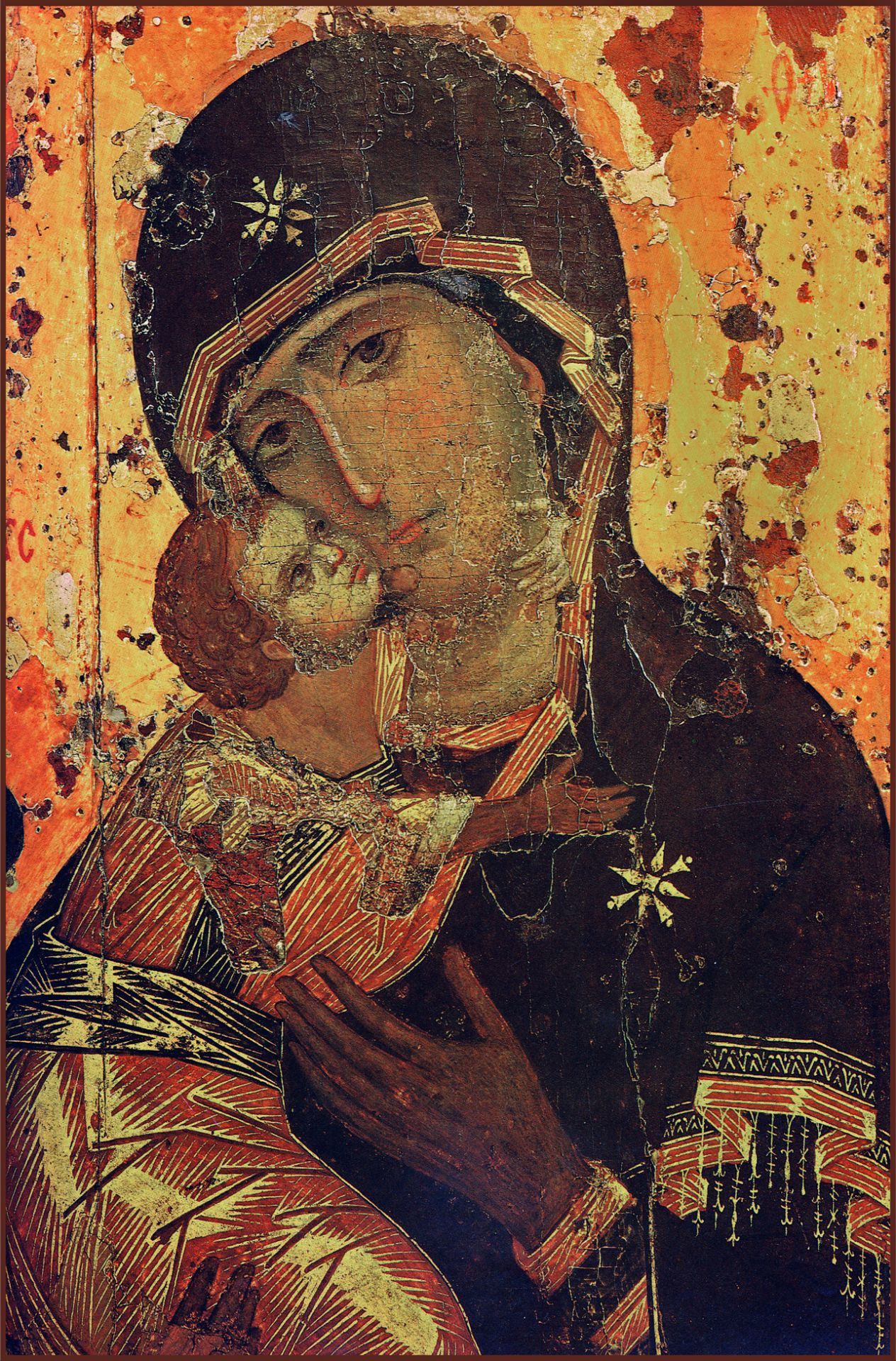 تجمع إيقونة فلاديمير بين أيقونَتين نموذجَين مُهمَّين لإيقونات والدة الإله:![]()