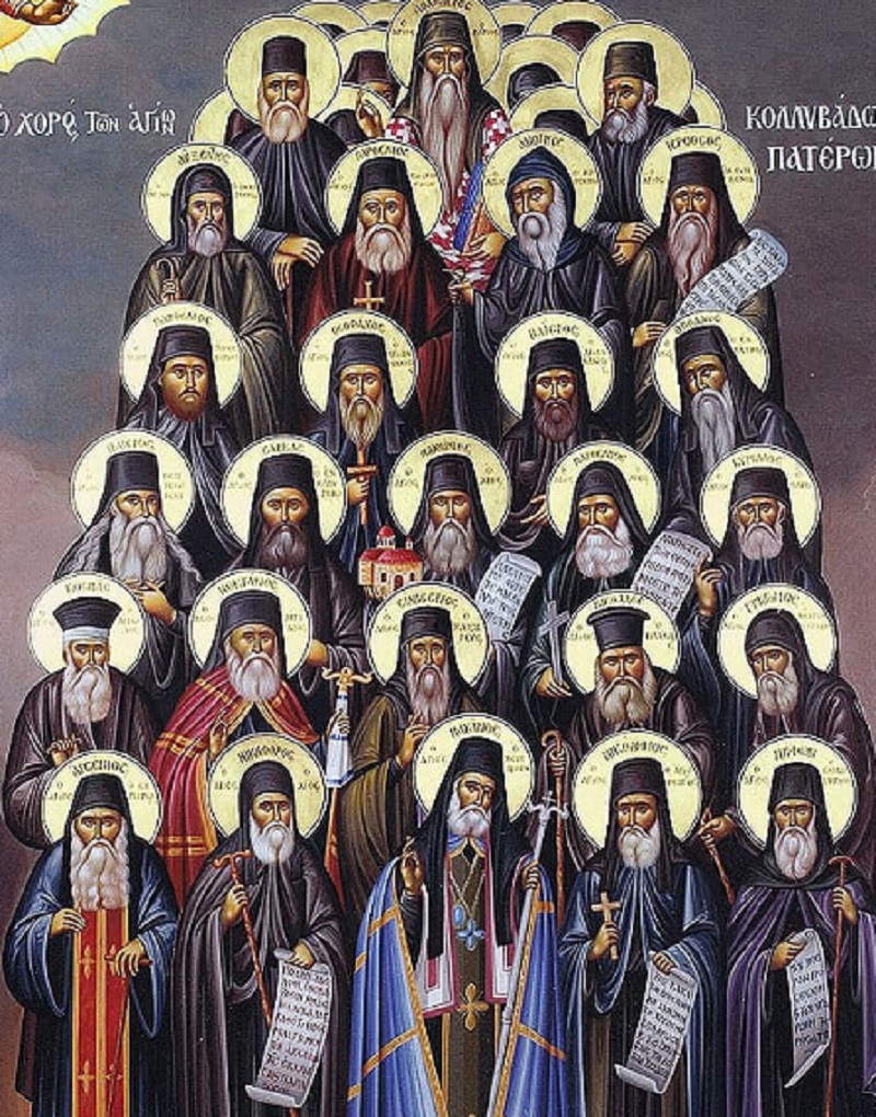 أثناسيوس من باروس، ونيقوديموس الآثوسي، ومكاريوس الكورنثي. هؤلاء الأشخاص، بسبب نشاطاتهم وتضحياتهم وبالأخصِّ بسبب غيرتهم وحياتهم النموذجية لروح الآباء، قد وُضِعوا على نحوٍ ملائم في مصفِّ قِدِّيسي كنيستنا.