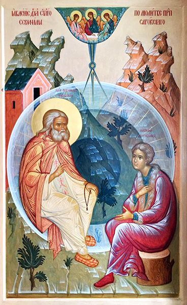 في يوم من الأيام الباردة المثلجة جرى بين القديس سيرافيم ونيقولاوس موتوفيلوف حوار. هذا بعض ما جاء فيه:
