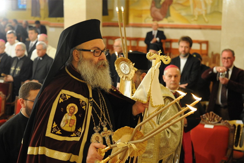 | ممثلا البطريرك الأورشليمي: Metropolitan Aristarchos يرافقه Fr Glaktion Aount |