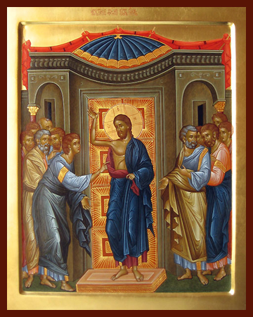 إذ كان القبر مختوماً أشرقتَ منه أيها الحياة، ولما كانت الأبواب مغلقة، وافيت إلى التلاميذ أيها المسيح الإله قيامة الكل، وجدّدت لنا بهم روحاً مستقيماً بحسب عظيم رحمتك