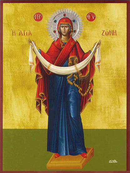 في حوالي العام ٨٨٨م وحين كانت زوجة الأمبراطور لاون السّادس الحكيم، المدعوّة زويي، مريضة مرضًا شديدًا بتأثير الرّوح الخبيث، أُعلمت في رؤيا حصلت معها أنّها ستنال الشّفاء بوضع زنّار والدة الإله عليها.