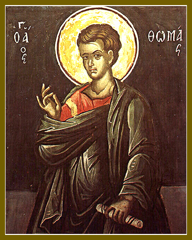 The Holy and Glorious Apostle Thomas was born in the Galileian city of Pansada and was a fisherman. Hearing the good tidings of Jesus Christ, he left all and followed after Him. The Apostle Thomas is included in2 the number of the holy Twelve Apostles of the Savior.