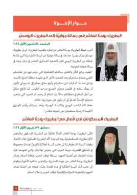 البطريرك يوح ّنا العاشر ،من جهته ،للبطريرك برثلماوس مشاعره الأخويّة ووقوفه