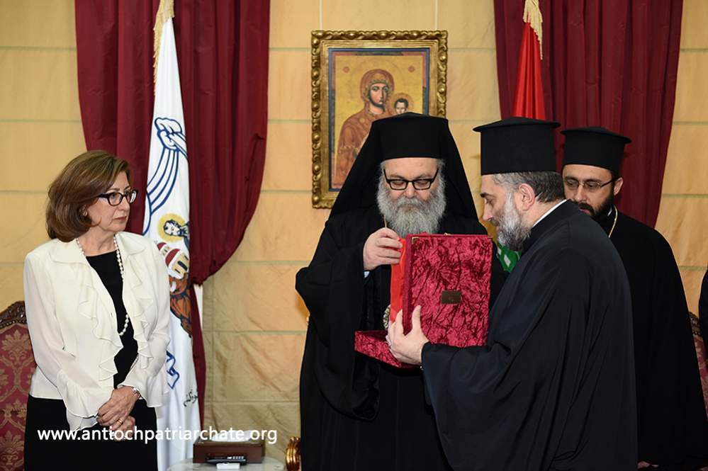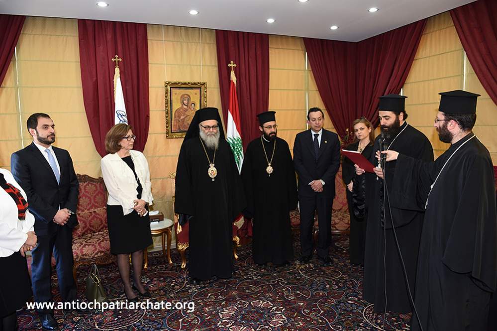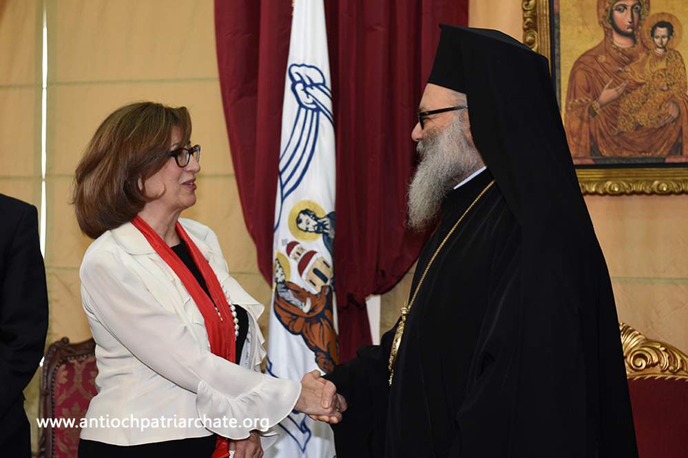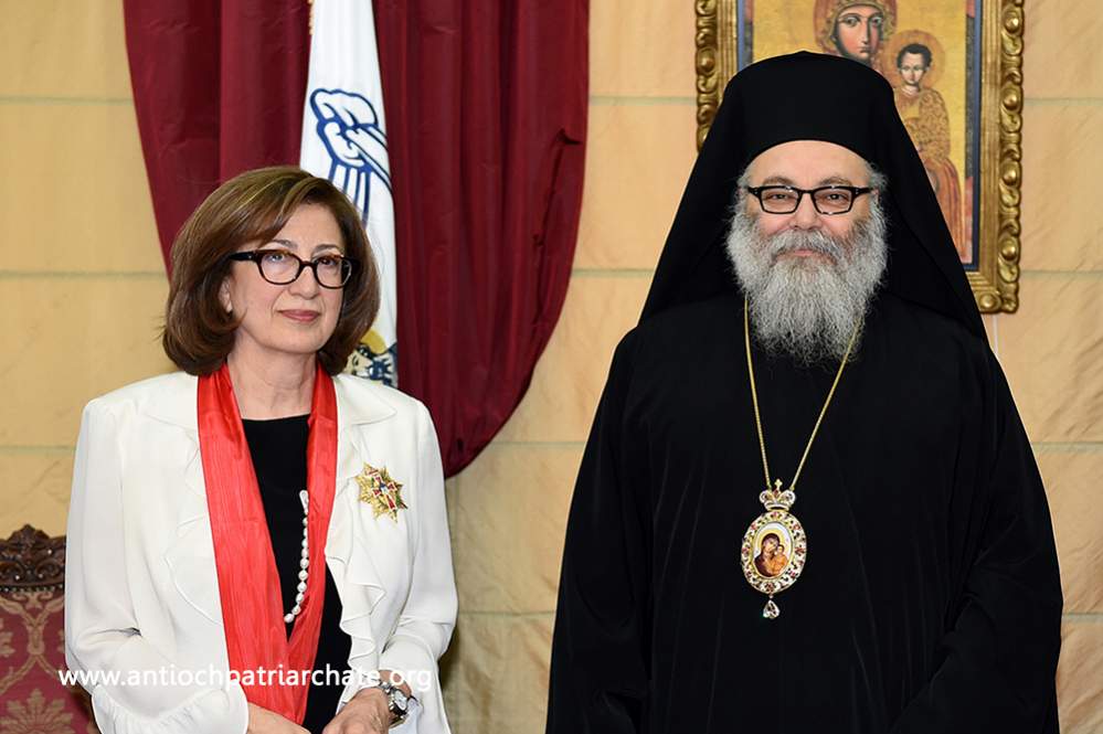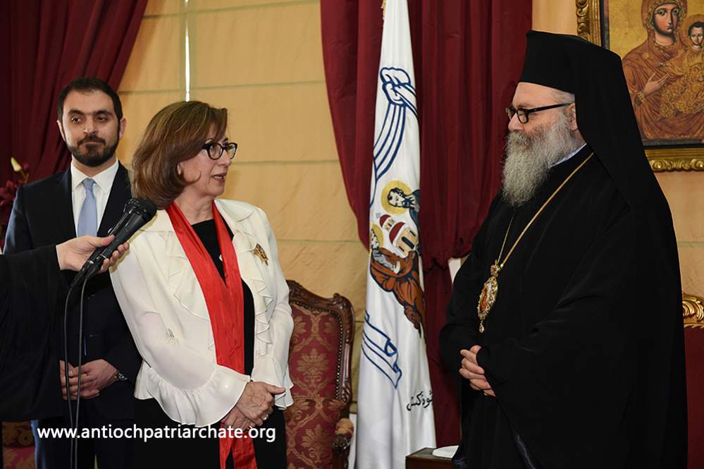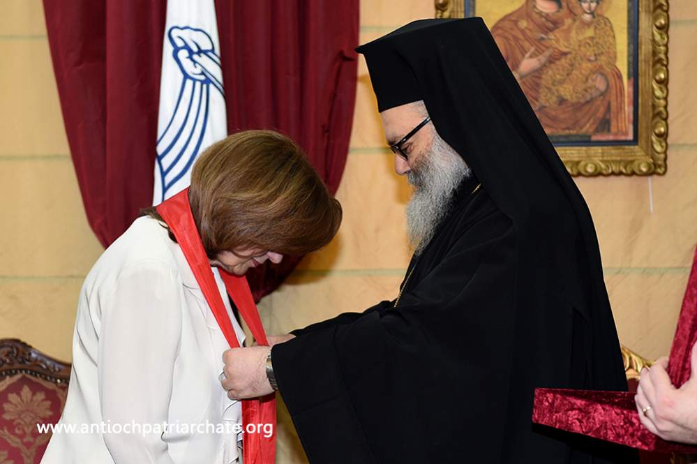 البطريرك يوحنا العاشر يقلّد السفيرة اليونانية في لبنان وسام القدّيسين بطرس وبولس