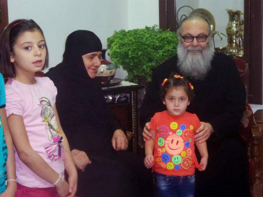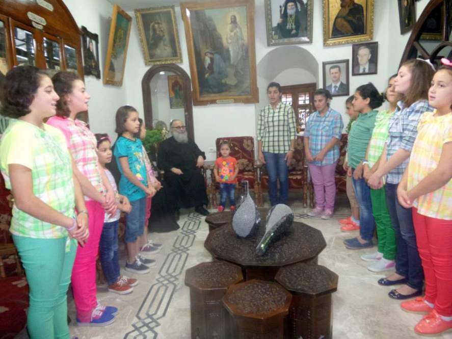 البطريرك يوحنا العاشر مع بنات ميتم دير صيدنايا
