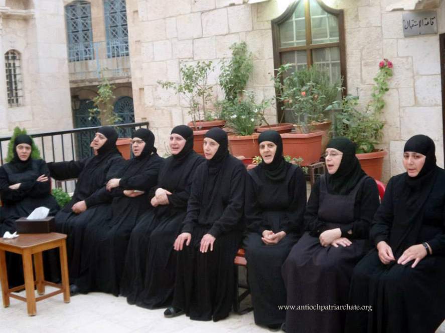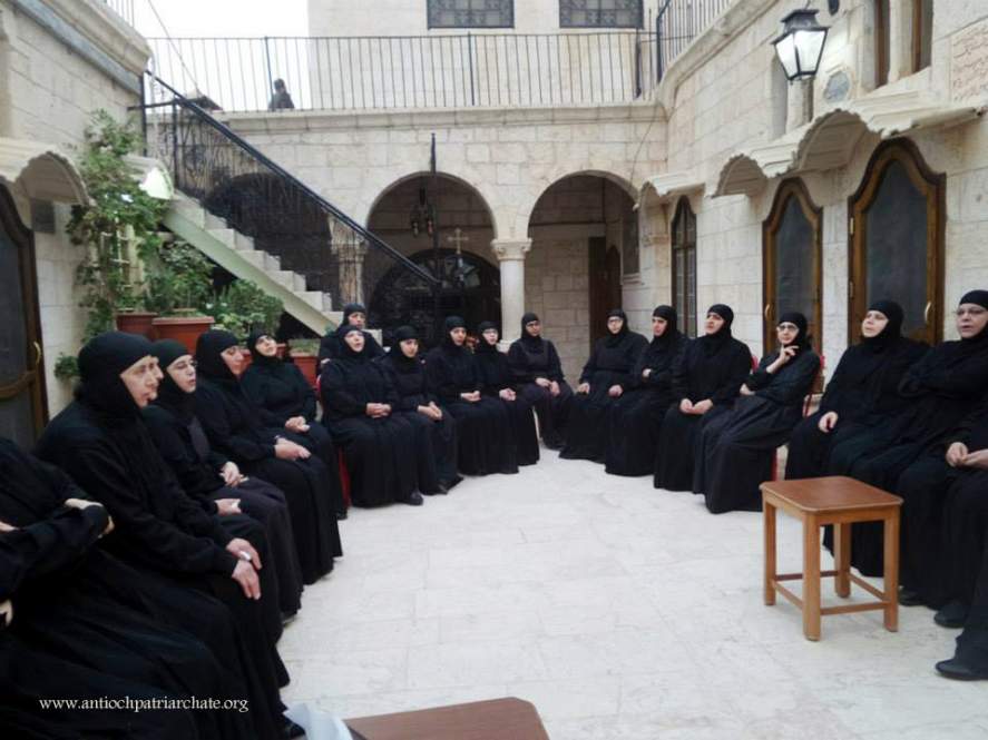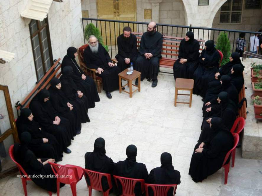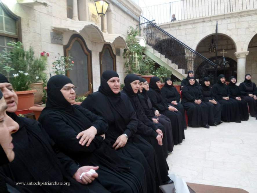لقاء الأب بالعائلة - البطريرك يوحنا العاشر مع راهبات دير صيدنايا