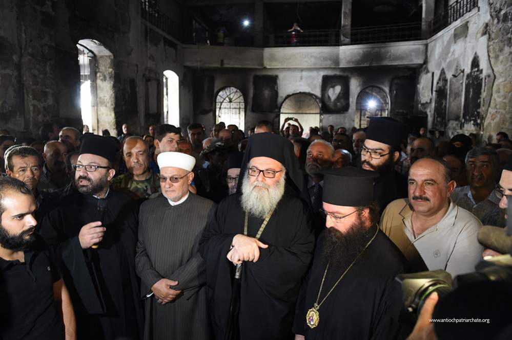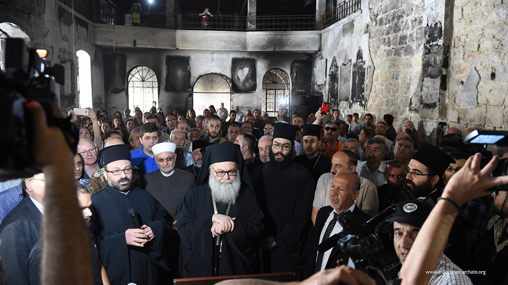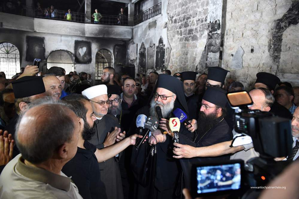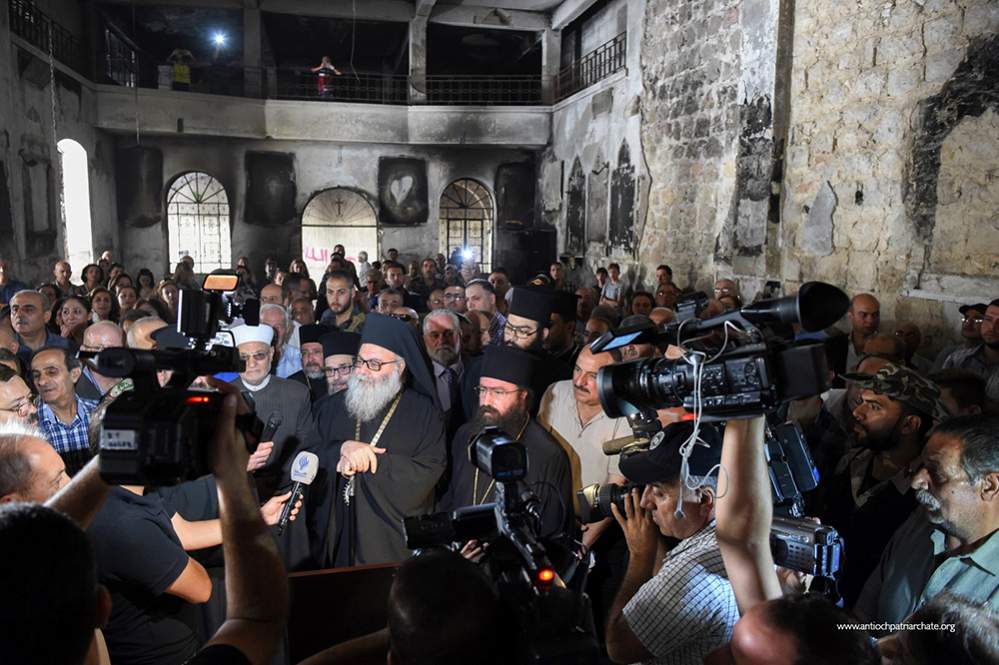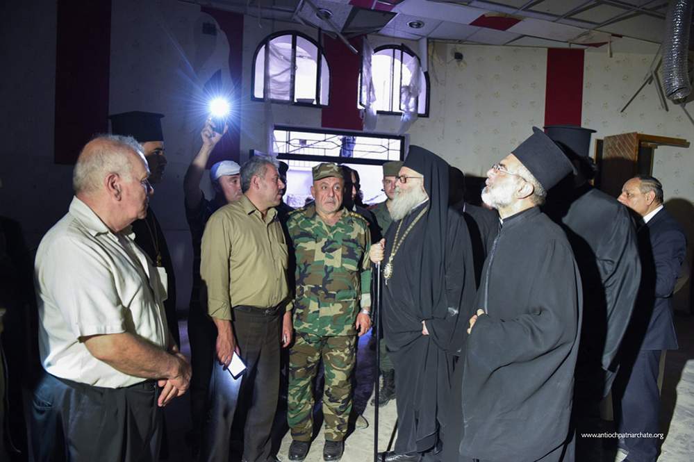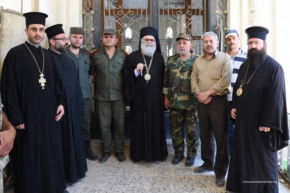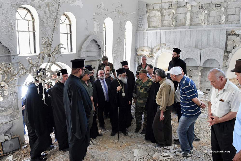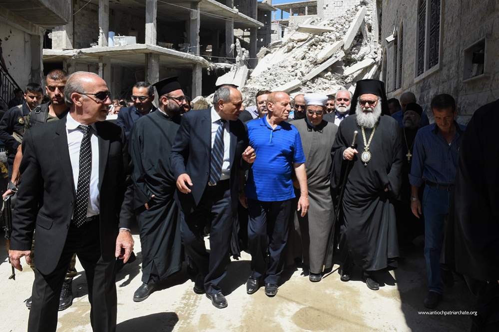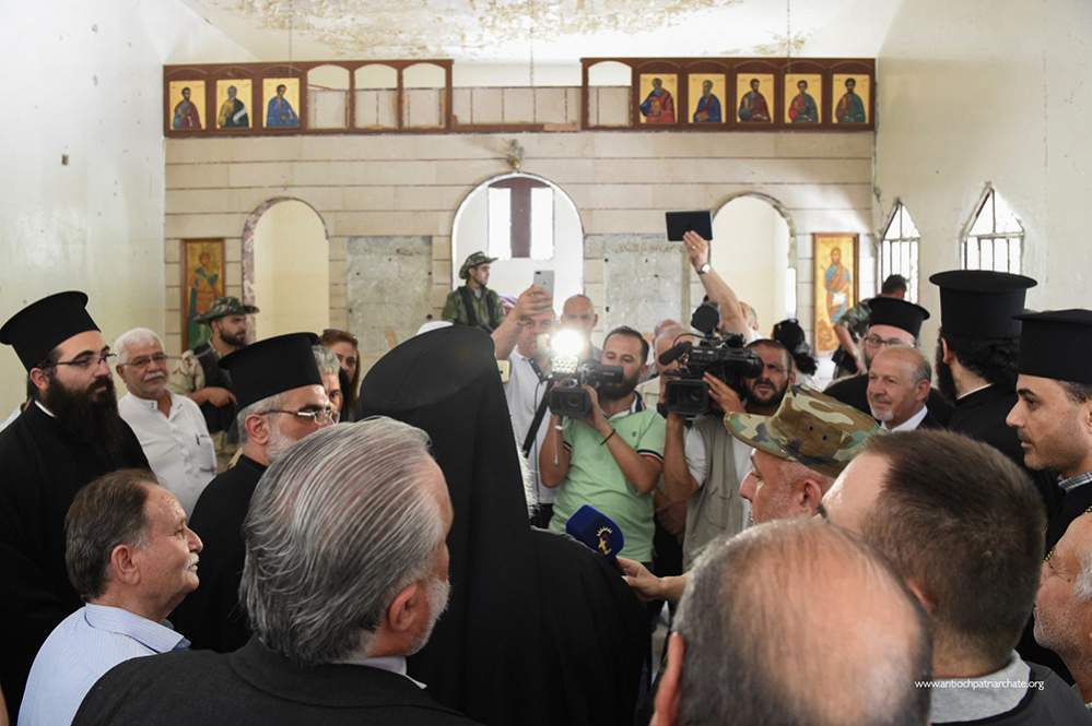 البطريرك يوحنا العاشر في زيارة تفقديّة إلى عربين وحرستا في الغوطة الشرقيّة. ٦ تمّوز ٢٠١٨