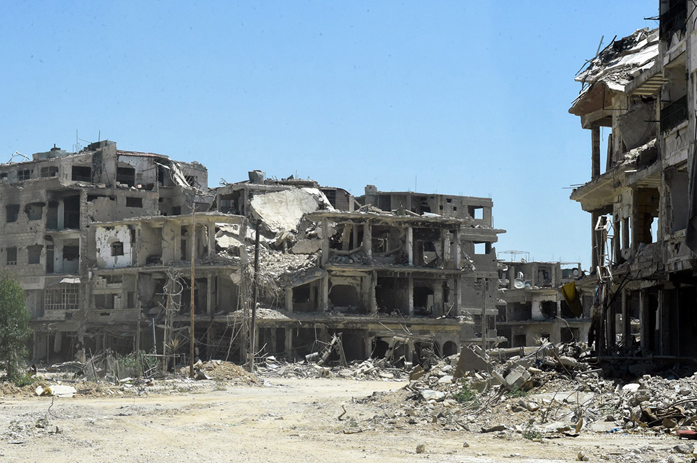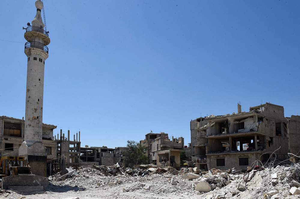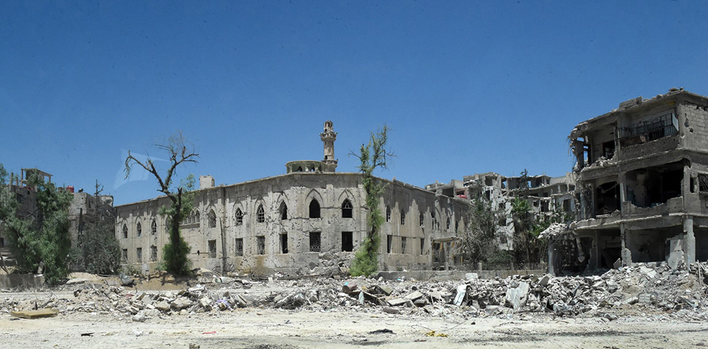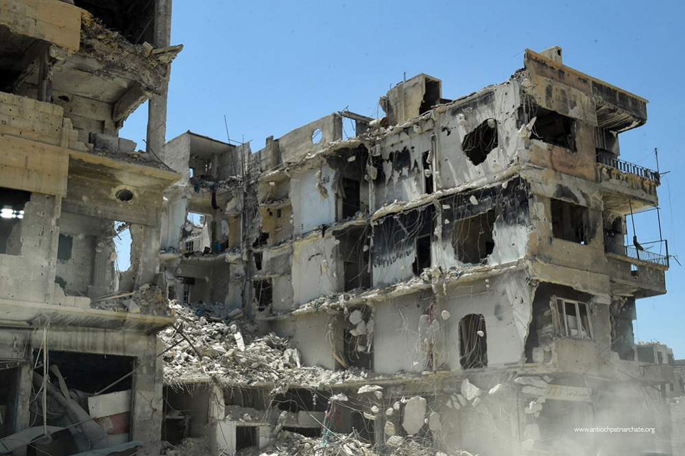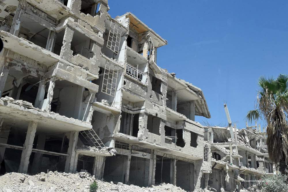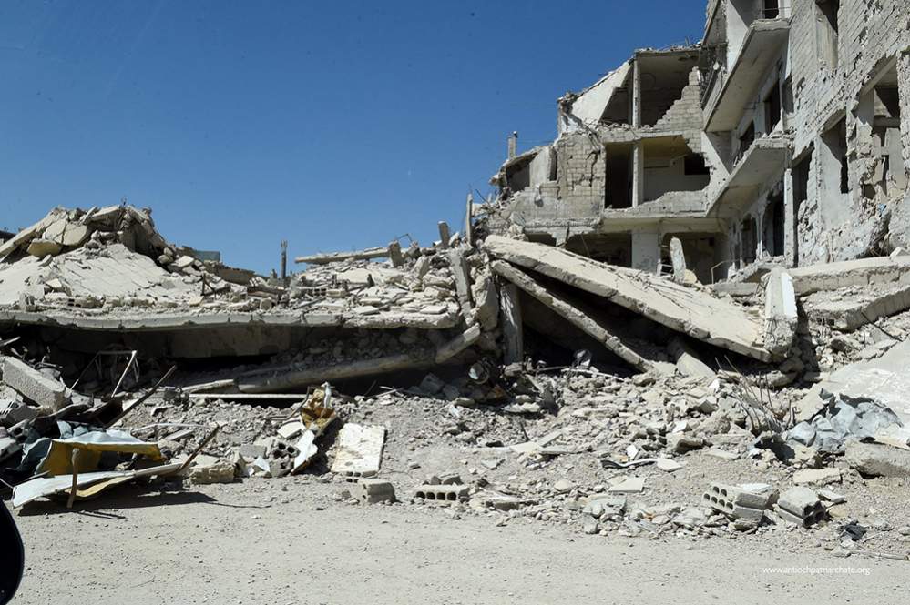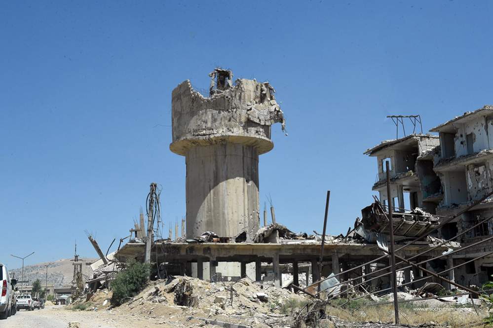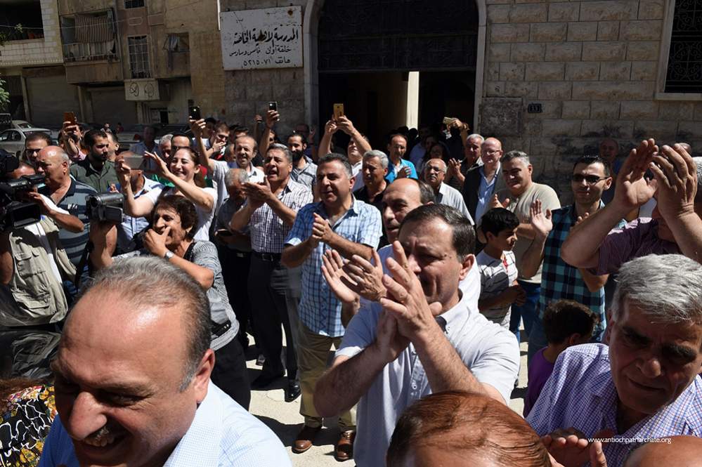 البطريرك يوحنا العاشر في زيارة تفقديّة إلى عربين وحرستا في الغوطة الشرقيّة. ٦ تمّوز ٢٠١٨