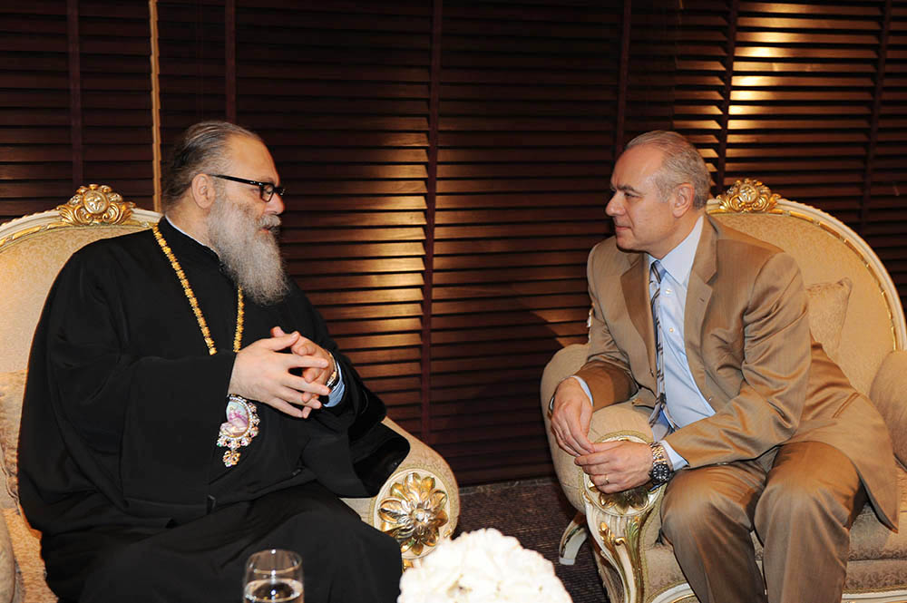 البطريرك يوحنا العاشر يلتقي أبناء الرعية الأنطاكية في البحرين ٣ أيار ٢٠١٤