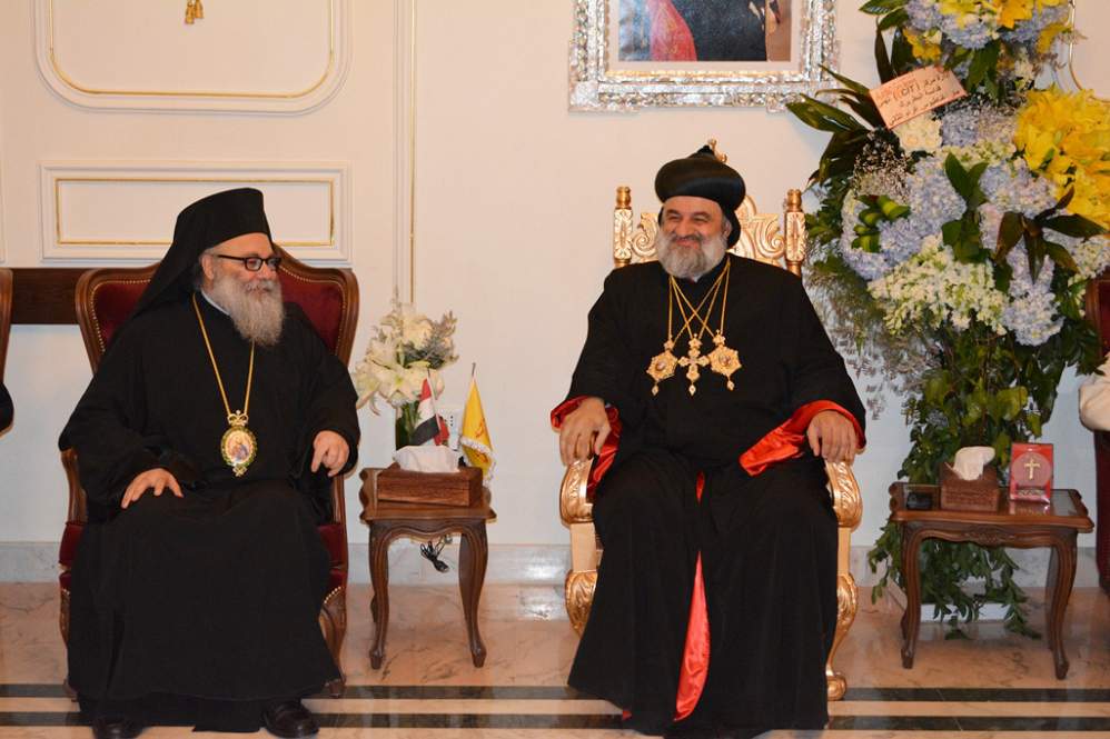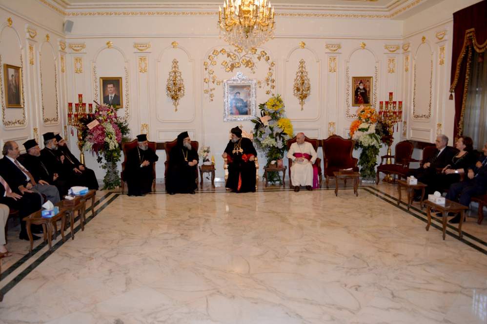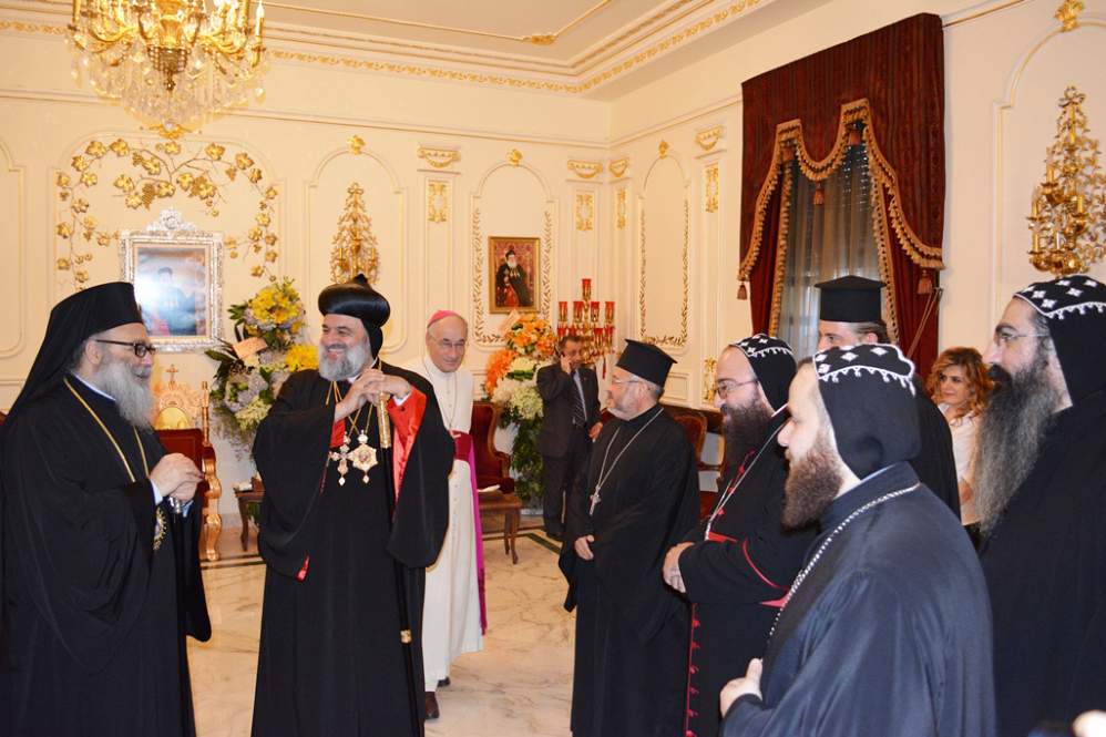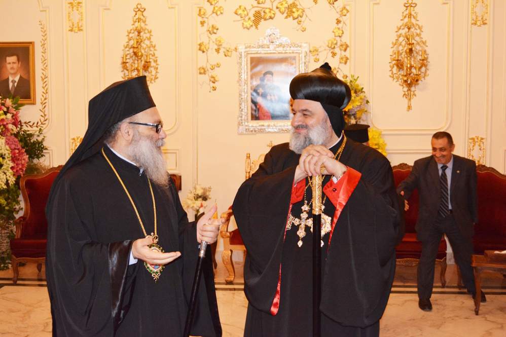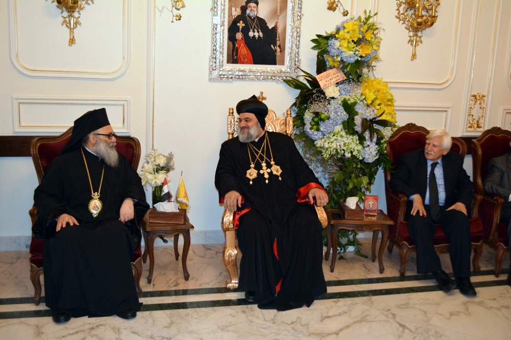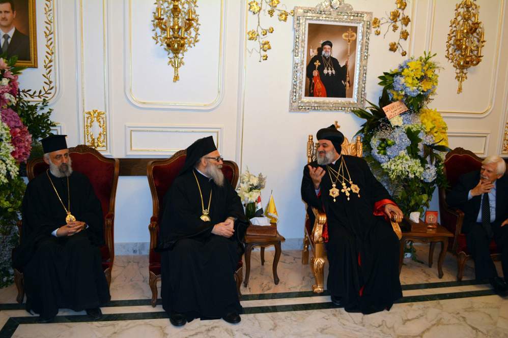 صاحب الغبطة البطريرك يوحنا العاشر يهنئ قداسة البطريرك مار إغناطيوس أفرام الثاني للسريان الأرثوذكس مع وفد من أساقفة وكهنة أبرشية دمشق