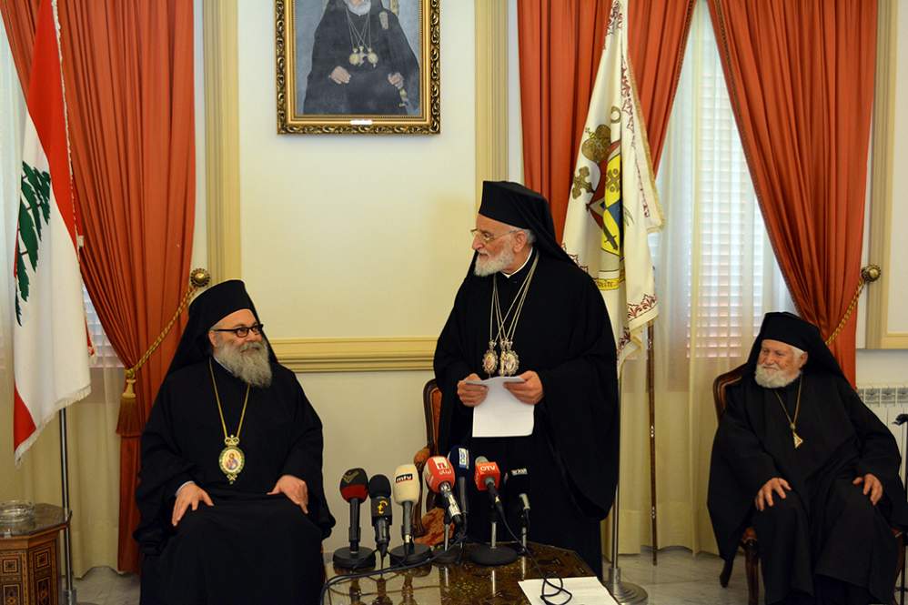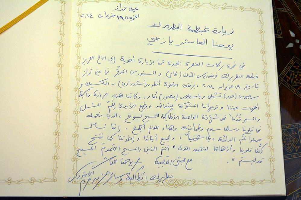 البطريرك يوحنا العاشر في زيارة للبطريرك غريغوريوس الثالث لحام ولسينودوس الكنيسة الملكية - عين تراز، 2014-06-19
