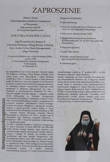 His Beatitude John X visits Warsaw- Poland, August 16 – 2016
