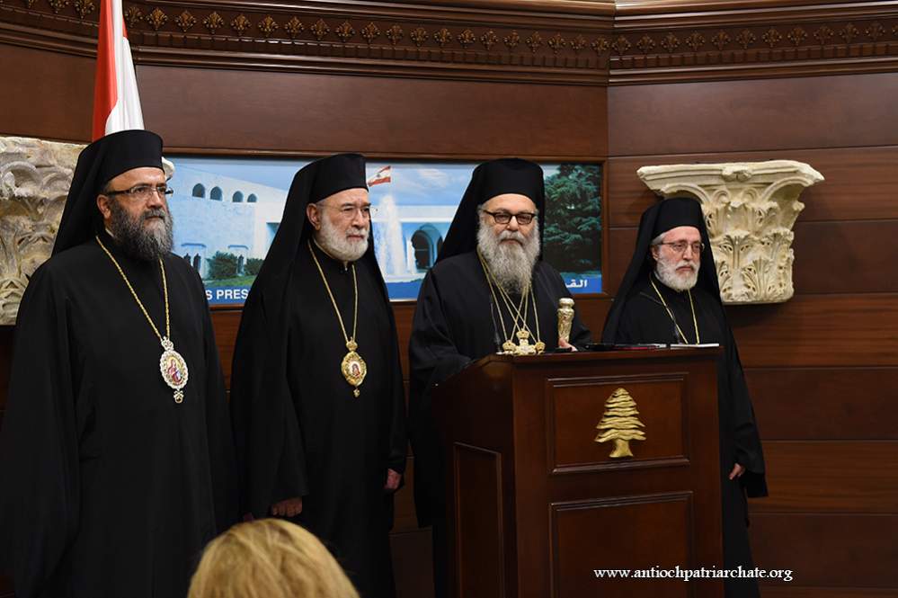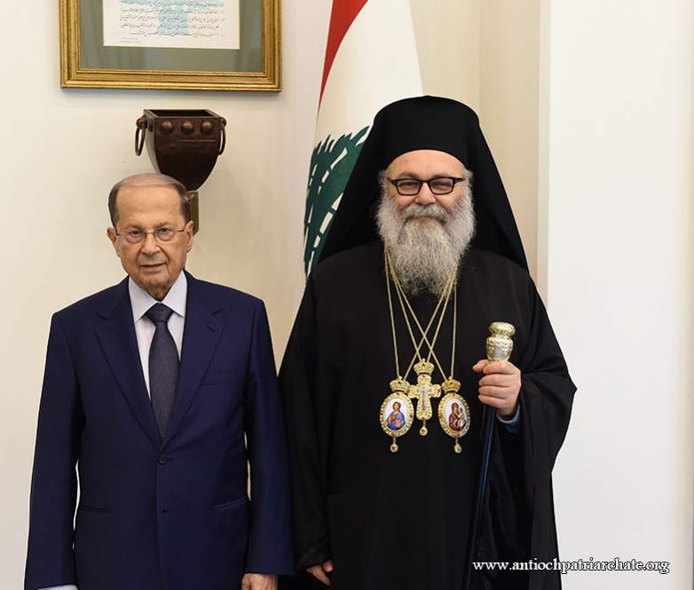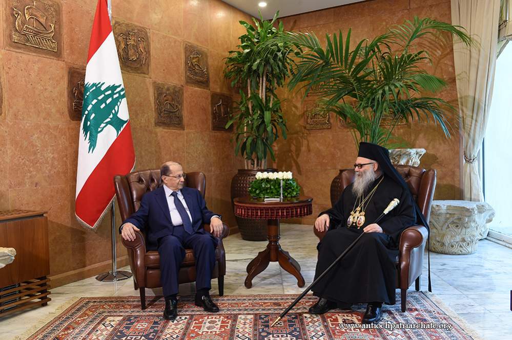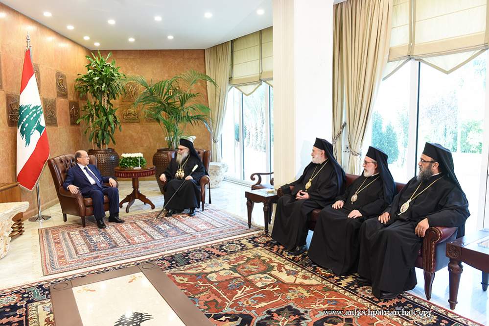 The president of the Lebanese Republic general Michel Aoun meets with His Beatitude John X accompanied by a delegation of orthodox metropolitans