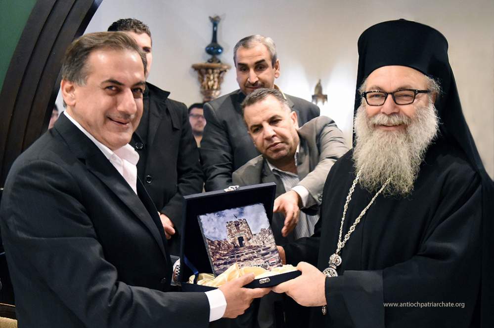 The mayor of the city of Aleppo offers to His Beatitude the shield of the city