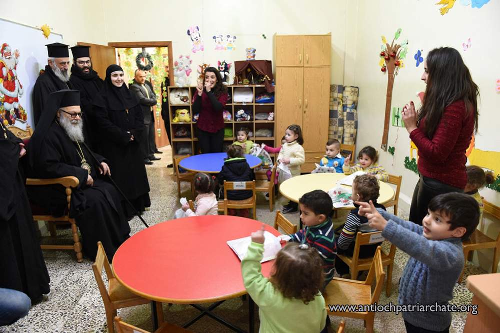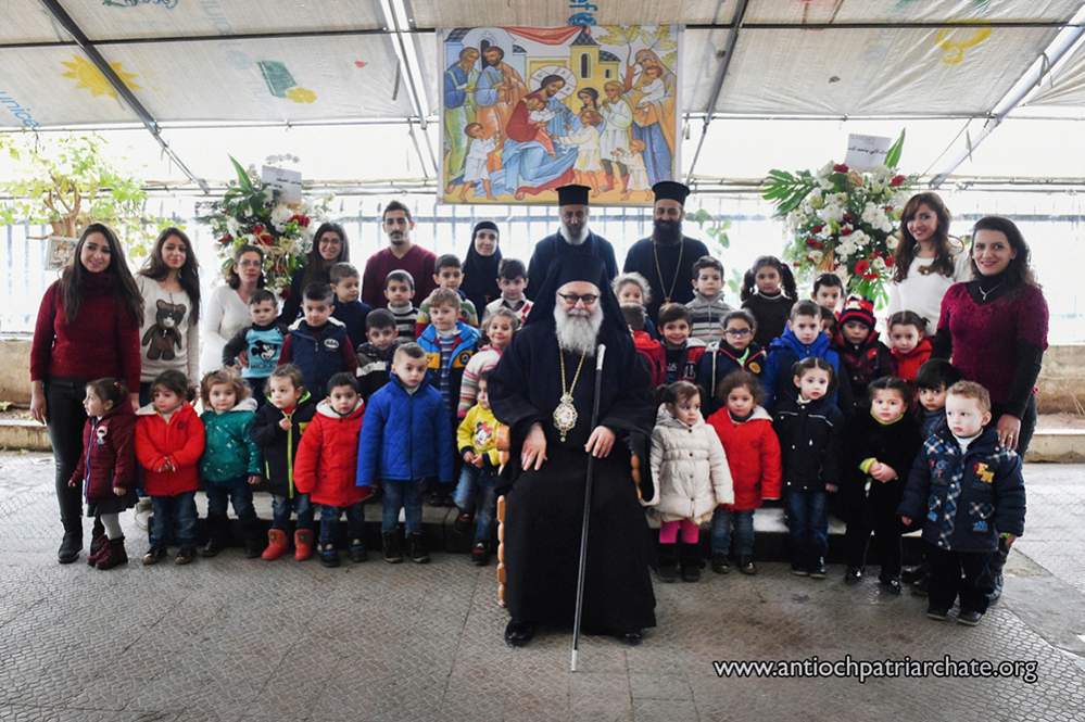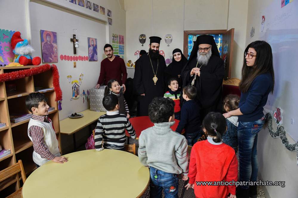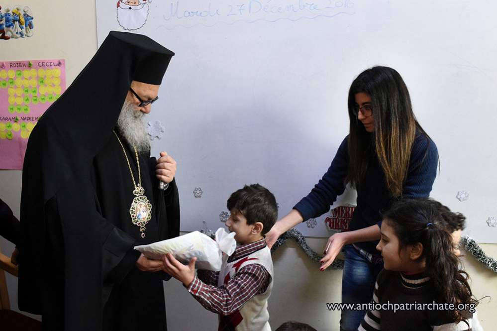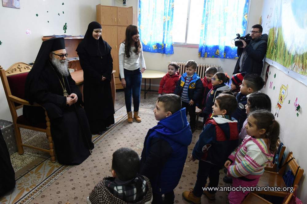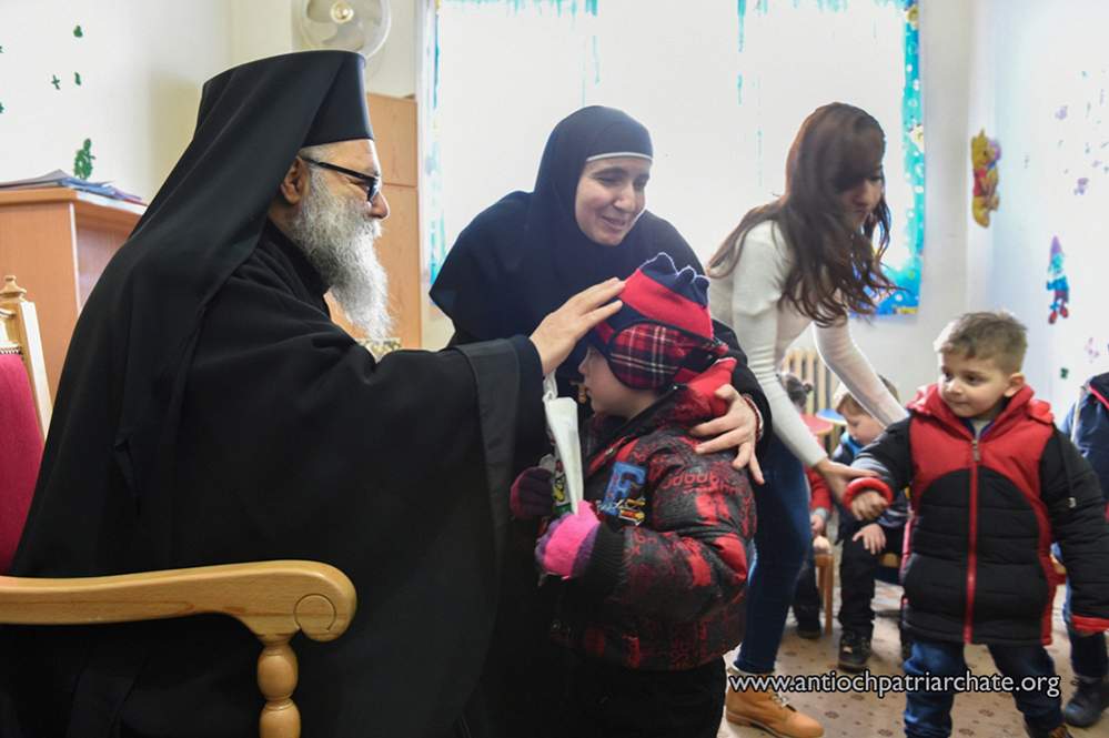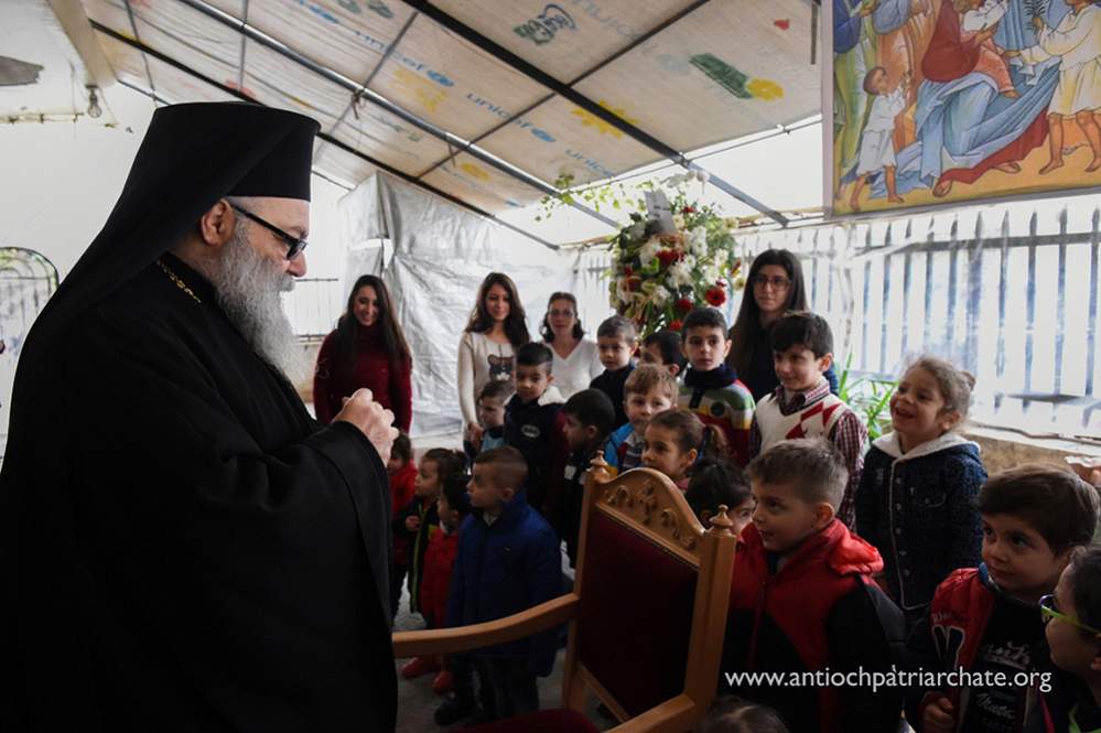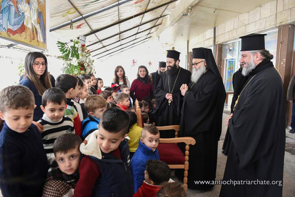 His Beatitude patriarch John X blesses the children of St. Elias school that belongs to the archdiocese of Aleppo