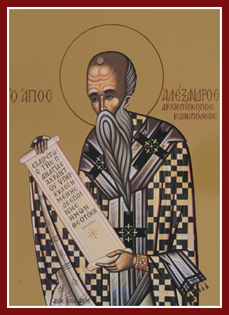 Saint Alexander was sent to the First Ecumenical Council in Nicaea as the delegate of Saint Metrophanes, Bishop of Constantinople (see June 4), to whose throne he succeeded in the year 325. When Arius had deceitfully professed allegiance to the Council of Nicaea, Saint Alexander,