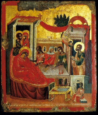 The first lesson at Great Vespers (Genesis 28:10-17) describes Jacob’s dream of a ladder reaching from earth to heaven, and the angels ascending and descending upon it. The second lesson (Ezekiel 43:27-44:4) speaks of the gate of the sanctuary which faces east. God enters through this gate, which is shut so that no one else can enter by it. The third reading (Proverbs 9:1-11) talks about the house that Wisdom has built.
